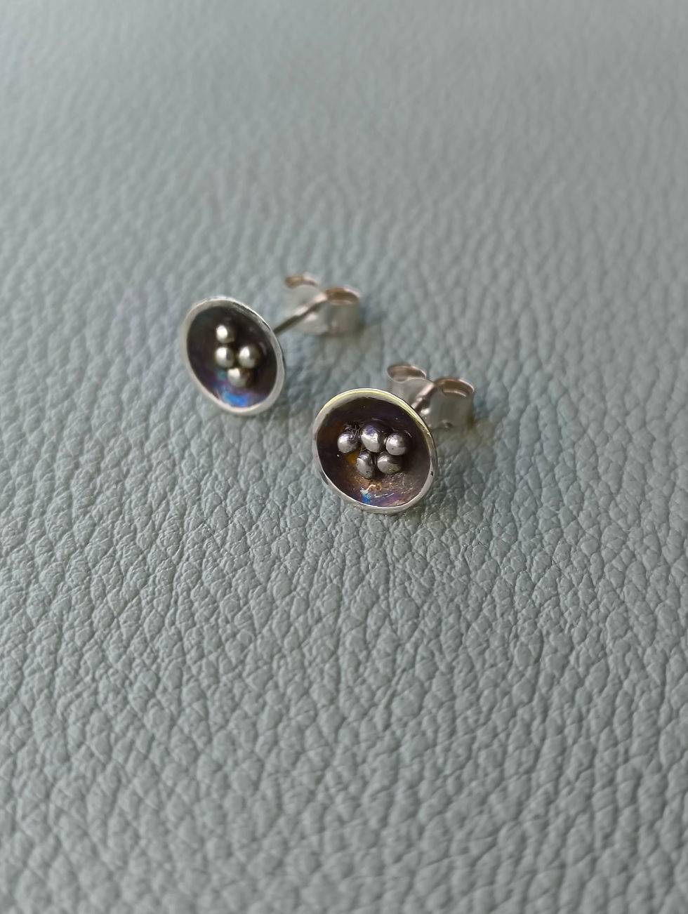 The sterling silver bail that attaches to the baroque pearl is made to fit, and has irregular dots/spots around the outside.